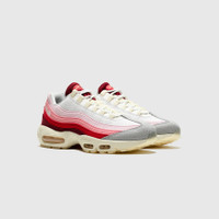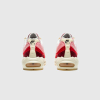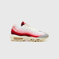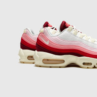 - DM0012 600 - Team Red/Summit White-University Red - A brand new colorway of the much beloved Air Max '95, done in a way to represent the human body and its layers of muscles, tissue and nerves under the skin - Team red, university red, flamingo, pale pink and white suede upper with medium grey suede toe cap and additional embroidery throughout the entire upper - White wide mesh tongue with white 3M lace cover & university red spiral "AIR MAX '95" branding - Sail canvas lace loops - White embossed mini swoosh at the ankle - White 3M heel panel with black "NIKE AIR" branding - Sail foam midsole with "AIR" units in the forefoot & heel - Translucent clear rubber outsole - Twist rope laces