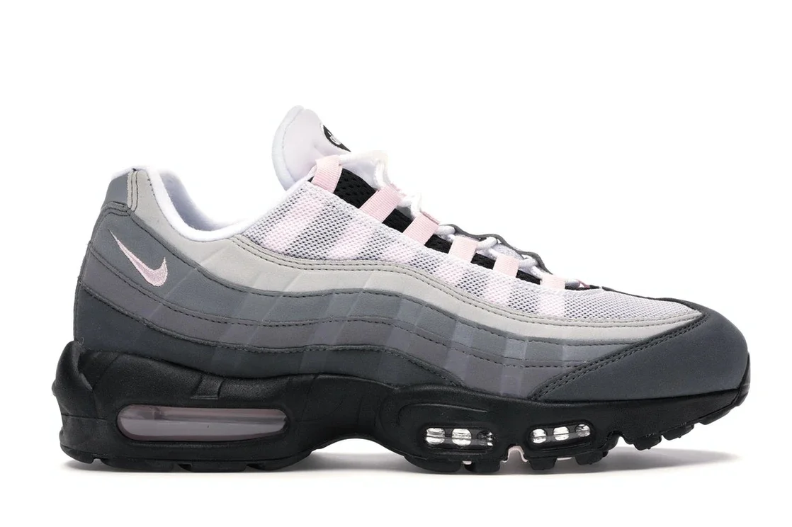 The Nike Air Max 95 Gunsmoke Pink Foam is an iteration of the classic Air Max 95 sneaker. At the top of its tongue, this pair features Air Max branding. This branding is over a white base similar to the shade of its laces and inner collars. Its forefoot boasts pink reflective detailing and pink eyelet panels that pop out from black mesh underlays. Still, it boasts white mesh above darkened horizontal panels on its upper. All these details lie on a tinted Air Unit midsole and a rugged rubber outsole. The Nike Air Max 95 Gunsmoke Pink Foam was released on March 6th, 2020. At the time, it had a $180 retail price. - Style CJ0588-001 - Colorway Black/Pink Foam-Gunsmoke-Grey Fog - Retail Price 180 - Release Date 2020-03-06 - Included Accessories Pink Arch Support - Featured false - Product Line Nike Air Max