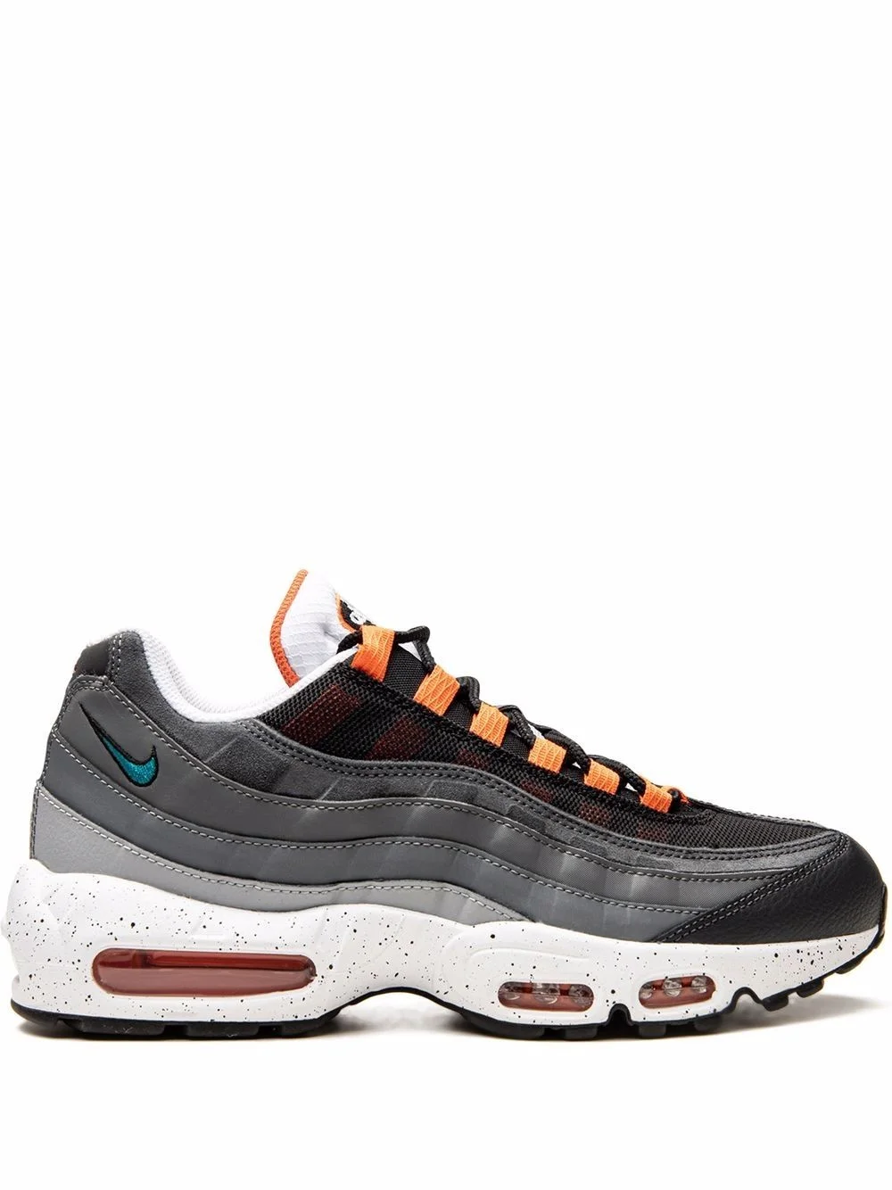Air Max 95 sneakers Showcasing Nike's distinct cushioning technology and rippled design across its upper, these Air Max 95 sneakers are produced in a tonal design with orange-hued accents. The '90s-inspired style features a signature branded Swoosh detail in a contrasting teal hue. Imported Composition Leather 100%