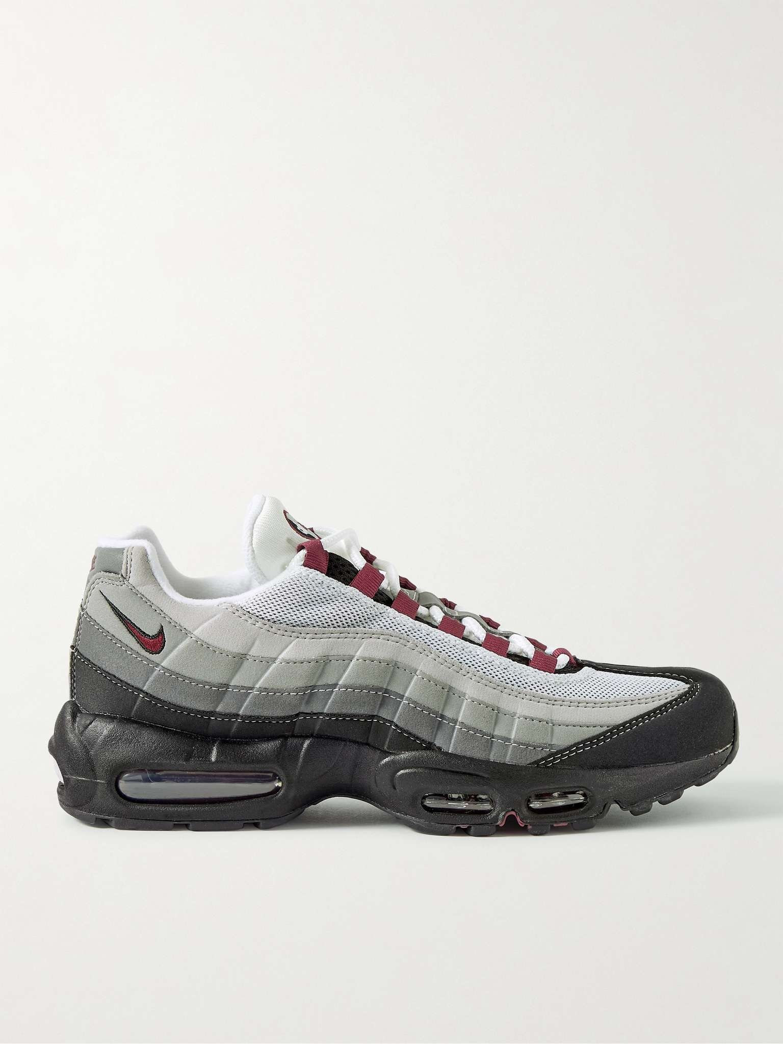 Nike updates its signature 'Air Max 95' sneakers with shades of grey in this version. They're constructed from suede and mesh panels that are punctuated with pops of 'Dark Beetroot' maroon. The rubber sole features the visible 'Air' units in the heel and forefoot for added comfort with every stride. Size & Fit - US 4 = UK 3/EU 36 - US 4.5 = UK 3.5/EU 36.5 - US 5 = UK 4/EU 37.5 - US 5.5 = UK 4.5/EU 38 - US 6 = UK 5/EU 38.5 - US 6.5 = UK 5.5/EU 39 - US 7 = UK 6/EU 40 - US 7.5 = UK 6.5/EU 40.5 - US 8 = UK 7/EU 41 - US 8.5 = UK 7.5/EU 42 - US 9 = UK 8/EU 42.5 - US 9.5 = UK 8.5/EU 43 - US 10 = UK 9/EU 44 - US 10.5 = UK 9.5/EU 44.5 - US 11 = UK 10/EU 45 - US 11.5 = UK 10.5/EU 45.5 - US 12 = UK 11/EU 46 - US 12.5 = UK 11.5/EU 47 - US 13 = UK 12/EU 47.5 - US 13.5 = UK 12.5/EU 48 - US 14 = UK 13/EU 48.5 - Fits true to size. Take your normal size Details & Care - White mesh, black and tonal-grey suede - Lace-up - Designer colour: Blackout/ Dark Beetroot/ Pearl Grey - Style number: DQ9001-001 - Nike follows its own size guide, therefore the size stated on the box will differ from the one provided in our size chart. To receive your correct fit, please refer to Size & Fit notes - This item has been imported