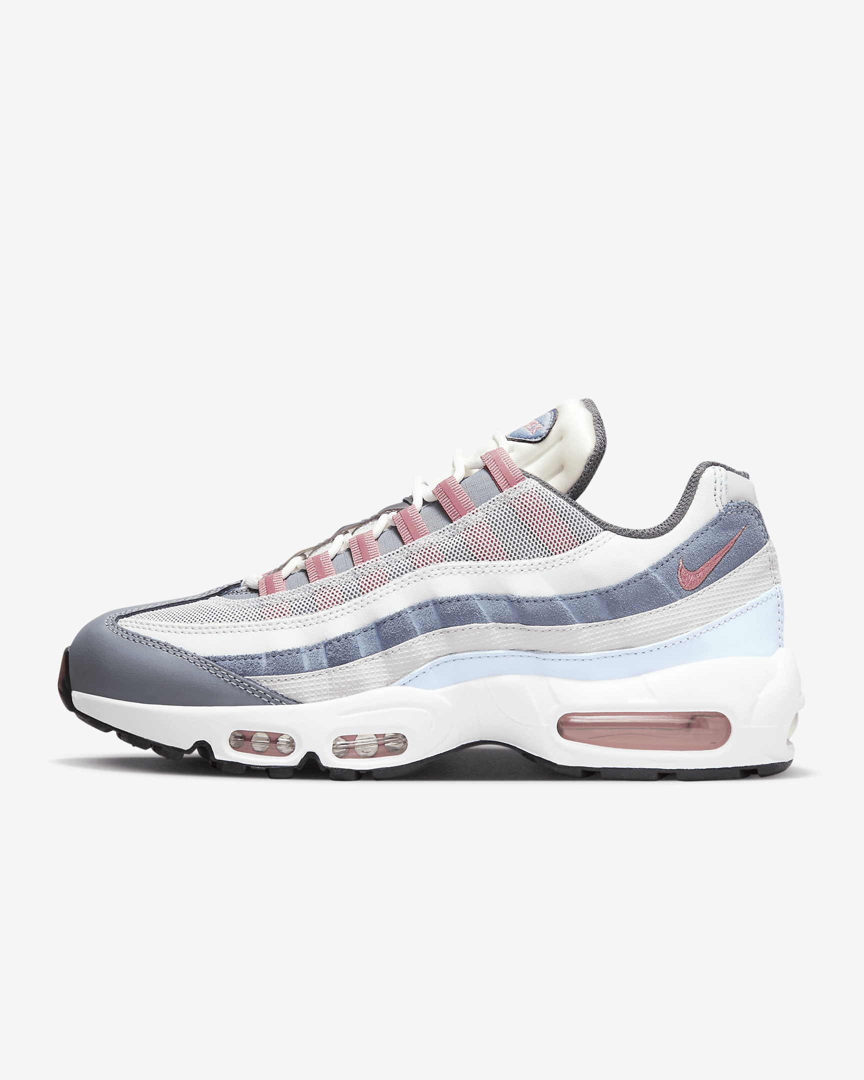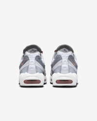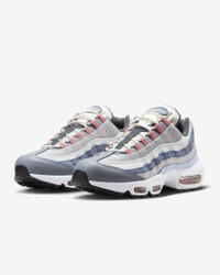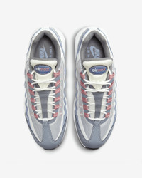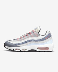 Taking inspiration from the human body and '90s track aesthetics, the Air Max 95 mixes unbelievable comfort with fast-paced style. The wavy side panels add natural flow to any outfit while visible Nike Air in the heel and forefoot delivers performance comfort. Benefits - Upper draws inspiration from the human body—the midsole represents the spine, graduated panels are the muscles and the laces are the shoe’s ribs. - Originally developed for performance running, visible Nike Air cushioning delivers all-day comfort. - Mesh is reinforced with leather and overlays for a highly breathable and durable design. - Flex grooves let your feet bend and move naturally. Product Details - Foam in the midsole - Rubber outsole - Shown: Vast Grey/Cool Grey/Summit White/Red Stardust - Style: DM0011-008 SIZE & FIT Fits small; we recommend ordering a half size up