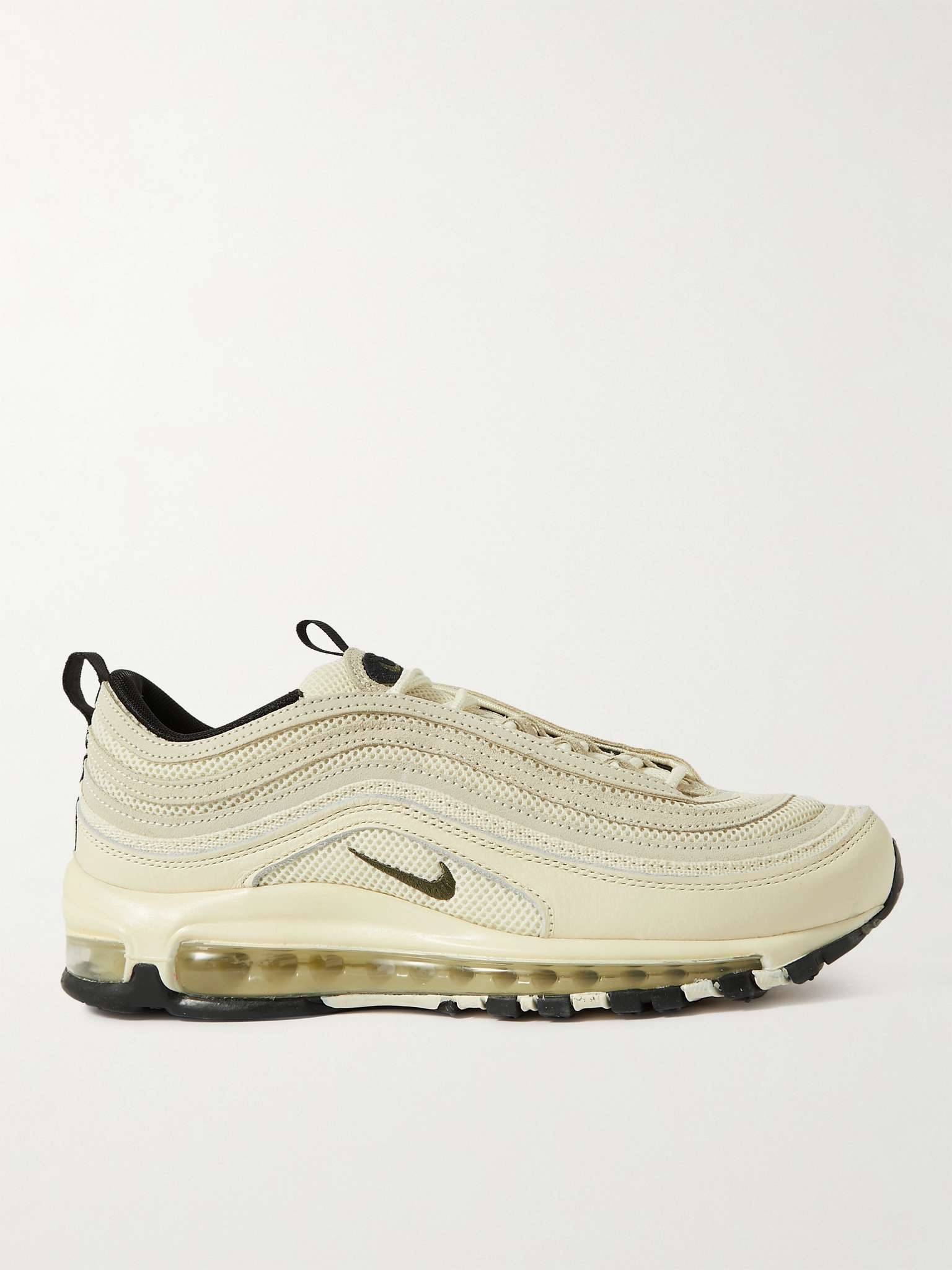Nike's 'Air Max 97' sneakers take inspiration from the aerodynamic and streamlined design of bullet trains. They're made from 'Coconut Milk'-hued leather and mesh with 'University Black' accents and are set on springy bubble soles. Size & Fit - US 4 = UK 3/EU 36 - US 4.5 = UK 3.5/EU 36.5 - US 5 = UK 4/EU 37.5 - US 5.5 = UK 4.5/EU 38 - US 6 = UK 5/EU 38.5 - US 6.5 = UK 5.5/EU 39 - US 7 = UK 6/EU 40 - US 7.5 = UK 6.5/EU 40.5 - US 8 = UK 7/EU 41 - US 8.5 = UK 7.5/EU 42 - US 9 = UK 8/EU 42.5 - US 9.5 = UK 8.5/EU 43 - US 10 = UK 9/EU 44 - US 10.5 = UK 9.5/EU 44.5 - US 11 = UK 10/EU 45 - US 11.5 = UK 10.5/EU 45.5 - US 12 = UK 11/EU 46 - US 12.5 = UK 11.5/EU 47 - US 13 = UK 12/EU 47.5 - US 13.5 = UK 12.5/EU 48 - US 14 = UK 13/EU 48.5 - Fits true to size. Take your normal size Details & Care - Cream leather and mesh, cream and beige suede - Lace-up - Designer colour: Coconut Milk/ Black - Style number: DV5451-100 - Nike follows its own size guide, therefore the size stated on the box will differ from the one provided in our size chart. To receive your correct fit, please refer to Size & Fit notes - This item has been imported