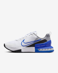 The Air Max Alpha Trainer 6 brings sturdiness and comfort, the best of both worlds, to your toughest workouts. A flat, wide base helps keep you from sinking, so you can set and hit your goals. The robust heel, boosted by visible "performance Air" cushioning, offers dependable stability when digging deep for one more rep. Product Details - Shown: White/Light Smoke Grey/Black/Hyper Royal - Style: FQ1833-102