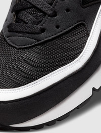 Low top sneaker. Mesh upper. Suede overlay around the toe box. Leather overlay around the heel. Perforated heel. Padded collar. Stitched TPU logo on the side panel. Front lacing. Foam midsole with an exposed air unit. Rubber outsole. - Mesh upper SKU: DJ6124-001