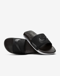 Whether you're hitting the gym or headed to the store, we've created a perfect go-between that delivers quick style and incredible comfort. Large, visible Air in the heel pairs with a comfy foam footbed for a striking statement in comfort. Benefits - Large Air unit in the heel delivers a modern look with incredible cushioning. - Plush strap feels soft and includes sporty "AIR" on the side and large Swoosh on top. - Foam footbed feels incredible straight out of the box. Cradled design and texture pattern helps keep your foot from sliding. Product Details - Shown: Black/Metallic Silver/White/Black - Style: DC1460-004