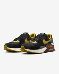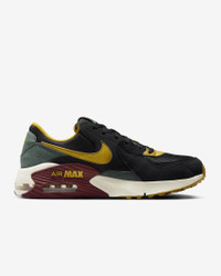 Get into the groove with this Nike Air Max Excee's subtle pops of understated color. Inspired by the Nike Air Max 90, these kicks deliver a modern twist on a legendary icon through elongated design lines and distorted proportions for style that defies time. Benefits - Upper combines real and synthetic leather and textiles for durable, layered look. - Max Air unit adds lasting cushioning and is visible through three windows for a truly modern look. - Elongated design lines honor the Air Max 90 while modernizing these kicks in a fresh way. - Stitched overlays add heritage styling and durability. - Padded, low-cut collar looks sleek and feels comfortable. Product Details - Foam midsole - Rubber outsole - Shown: Black/Vintage Green/Dark Team Red/Bronzine - Style: HQ3610-010