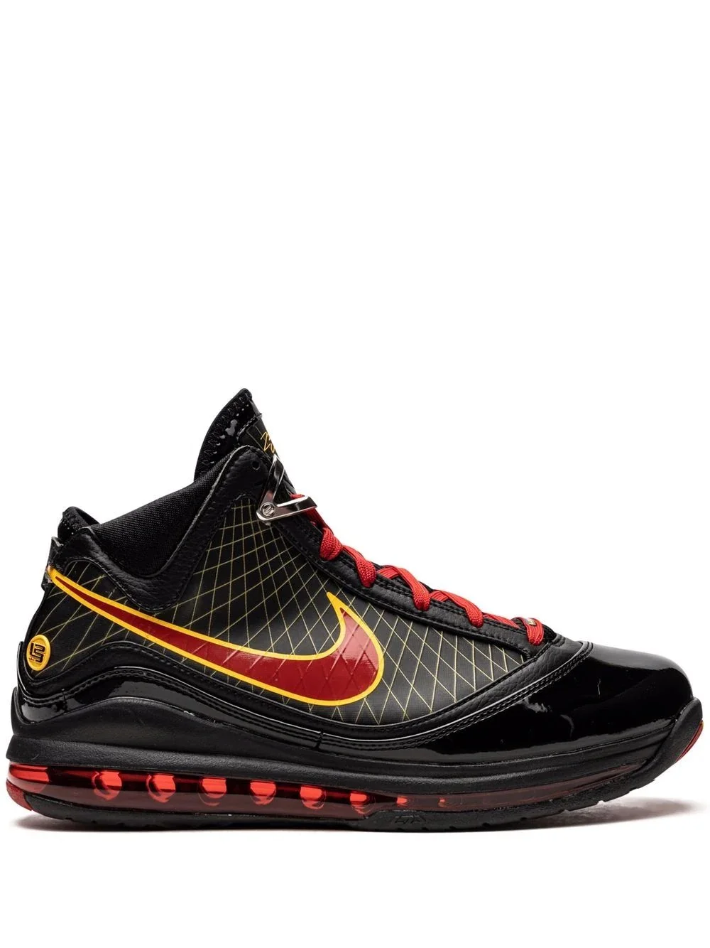 Air Max LeBron 7 PE "Fairfax" sneakers The latest Air Max LeBron 7 sneaker silhouette was released for the general public after its exclusive only offering. The high-top pair was designed in black and varsity red with maize yellow accents, also dubbing the model 'Fairfax' in honour of the Los Angeles high school sponsored by LeBron James himself. Highlights - Black/varsity red - Leather - Panelled design - Signature swoosh logo detail - Branded insole - Ridged rubber sole - Front lace-up fastening - Ankle-length - These styles are supplied by a premium sneaker marketplace. stocking only the most sought-after footwear, they source and curate some of the most hard to find sneakers from around the world. Imported Composition Leather 100%