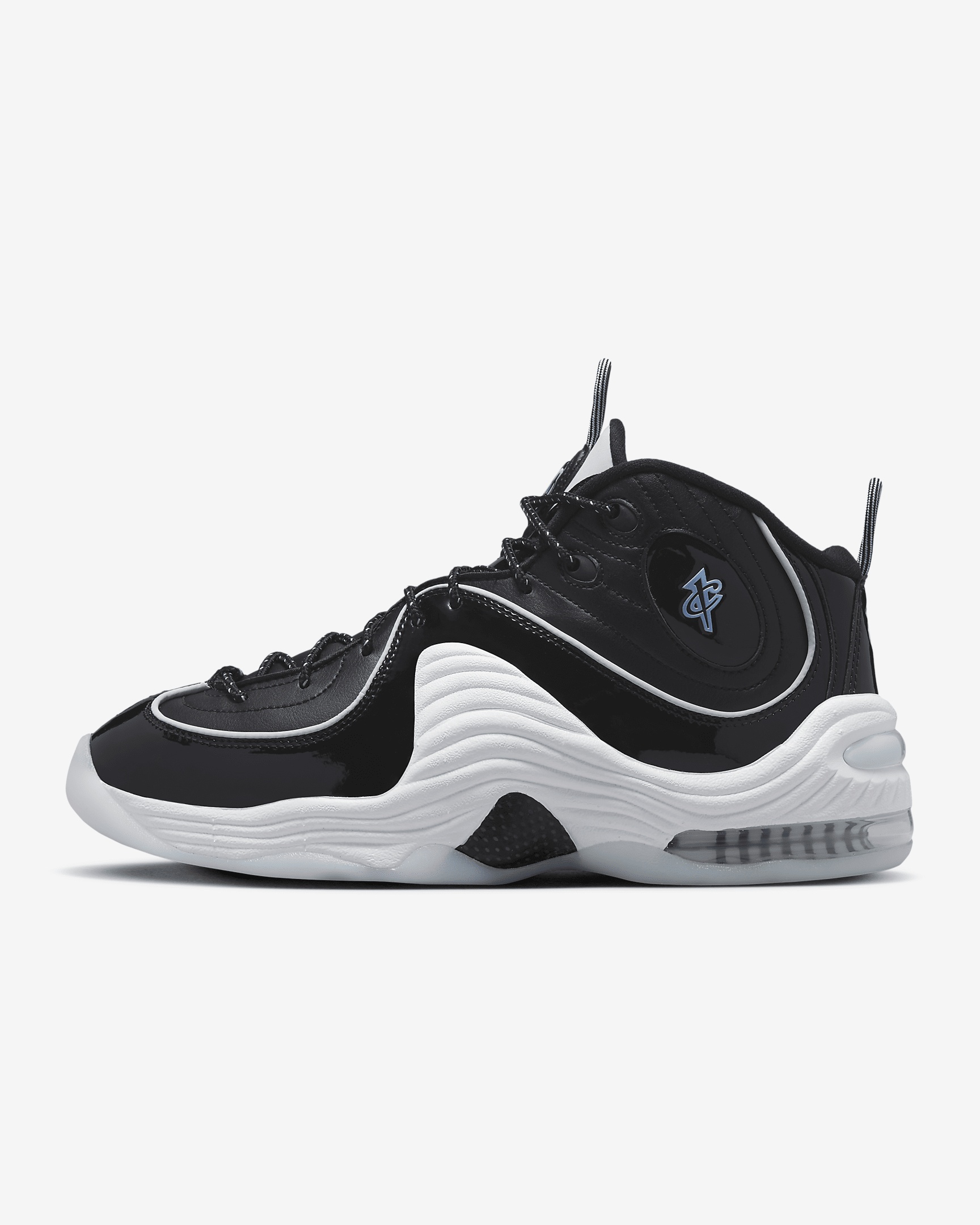 Flash back to '96 in the Air Penny 2. Bold and unmistakable, it was the first Air Penny to combine Max and Zoom Air technology. Now, the daring design comes wrapped in patent leather, while the signature “1 Cent” logo on the side and wavy design lines keep the coveted off-court appeal strong. Benefits - Real and patent leathers keep it durable and adds a premium look. - Snappy and responsive, Zoom Air cushioning helps provide a quick-off-the-ground sensation. - Plush and comfortable, Max Air cushioning has just the right amount of support. - Foam midsole adds soft cushioning. - Transparent rubber outsole adds traction and durability. Product Details - Shown: Black/White/Football Grey/Multi-Color - Style: DV0817-001