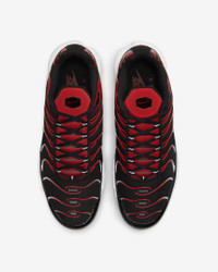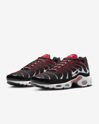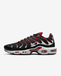 Let your attitude have the edge with flame-like caging that adds heat to the streets while airy mesh keeps you cool. The Nike Air Max Plus gives you a tuned Nike Air experience that offers premium stability and unbelievable cushioning. Benefits - Bringing no-worry beach life to the city, the supportive midfoot arch draws inspiration from a whale's tail. - Design lines of the iconic plastic cage nod to palm trees and ocean waves. - Originally designed for performance running, Nike Air units provide lightweight cushioning that lasts. - Synthetic upper with lightweight mesh adds breathability and durability. - Rubber outsole gives you durable traction. Product Details - Shown: Black/University Red/White - Style: DM0032-004