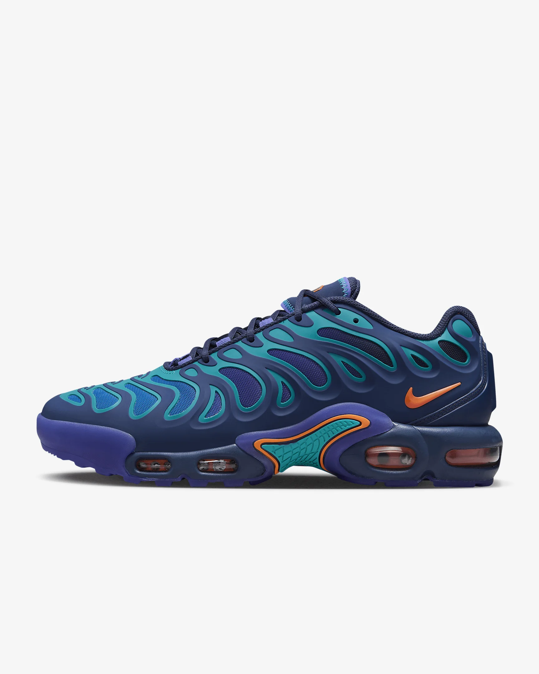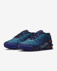 Let your attitude have the edge in the Air Max Plus Drift, a "tuned" Air experience that offers premium stability and cushioning. Featuring airy mesh, gradient coloring and the original wavy design lines, it celebrates your defiant style. Benefits - Upper combines mesh and synthetic materials for breathability and durability. - Originally designed for performance running, Nike Air units provide lightweight cushioning that lasts. - Bringing beach life to the city, the supportive arch draws inspiration from a whale's tail while the wavy lines nod to palm trees and ocean waves. Product Details - Foam midsole - Rubber outsole - Shown: Midnight Navy/Dusty Cactus/Persian Violet/Total Orange - Style: FD4290-400 SIZE & FIT Fits large; we recommend ordering a fl size down