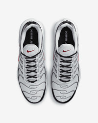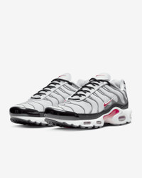 Let your attitude have the edge with flame-like caging that adds heat to the streets while airy mesh keeps you cool. The Nike Air Max Plus gives you a tuned Nike Air experience that offers premium stability and unbelievable cushioning. Benefits - Bringing no-worry beach life to the city, the supportive midfoot arch draws inspiration from a whale's tail. - Design lines of the iconic plastic cage nod to palm trees and ocean waves. - Originally designed for performance running, Nike Air units provide lightweight cushioning that lasts. - Synthetic upper with lightweight mesh adds breathability and durability. - Rubber outsole gives you durable traction. Product Details - Shown: Photon Dust/Particle Grey/Black/Varsity Red - Style: DM0032-002