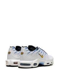 Air Max Plus "University Gold" sneakers Inspired by the original model constructed in 1978, these Air Max Plus sneakers come with a visible Air technology in their heel, allowing fans more than just to feel the Air cushioning, to also see it. This model has become a hit with athletes and collectors by offering striking colour combinations - like, in this case, white and light blue - and reliable, lightweight cushioning. Highlights - White/light blue - Signature swoosh logo detail - Gradient effect - Signature swoosh logo detail - Round toe - Front lace-up fastening - Logo patch at the tongue - Branded insole - Rubber sole with max air cushioning - These styles are supplied by a premium sneaker marketplace. stocking only the most sought-after footwear, they source and curate some of the most hard to find sneakers from around the world. Imported Composition Sole: Rubber 100% Lining: Fabric 100% Outer: Fabric 100%
