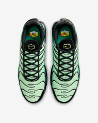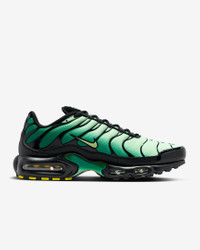 Let your attitude have the edge in the Air Max Plus. Its iconic caging adds heat to your look while airy mesh keeps you cool. And the visible cushioning lets you celebrate your defiant style in comfort. Benefits - Mesh upper with synthetic leather accents is durable and breathable. - Midfoot arch provides a supportive feel. - Originally designed for performance running, Nike Air units provide lightweight cushioning. - Rubber outsole gives you durable traction. Product Details - Not intended for use as Personal Protective Equipment (PPE) - Shown: Vapor Green/Malachite/Black/Light Lemon Twist - Style: DM0032-301 SIZE & FIT Fits small; we recommend ordering a half size up