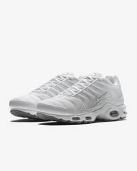 Let your attitude have the edge in your Nike Air Max Plus, a Tuned Air experience that offers premium stability and unbelievable cushioning. Featuring the OG's wavy design lines, TPU accents and airy mesh on the upper, it celebrates defiant style. Benefits - The synthetic upper features airy mesh for lightweight comfort that's durable. - Originally designed for performance running, Nike Air units provide lightweight cushioning that lasts. - Bringing beach life to the city, the prominent TPU arch draws inspiration from a whale's tail and adds structure while the iconic TPU fingers nod to palm trees and ocean waves. - The TPU toe tip adds durability and shine. Product Details - Reflective details - Not intended for use as Personal Protective Equipment (PPE) - Rubber sole - Shown: White/Black/Cool Grey/White - Style: 604133-139 SIZE & FIT Fits small; we recommend ordering a half size up