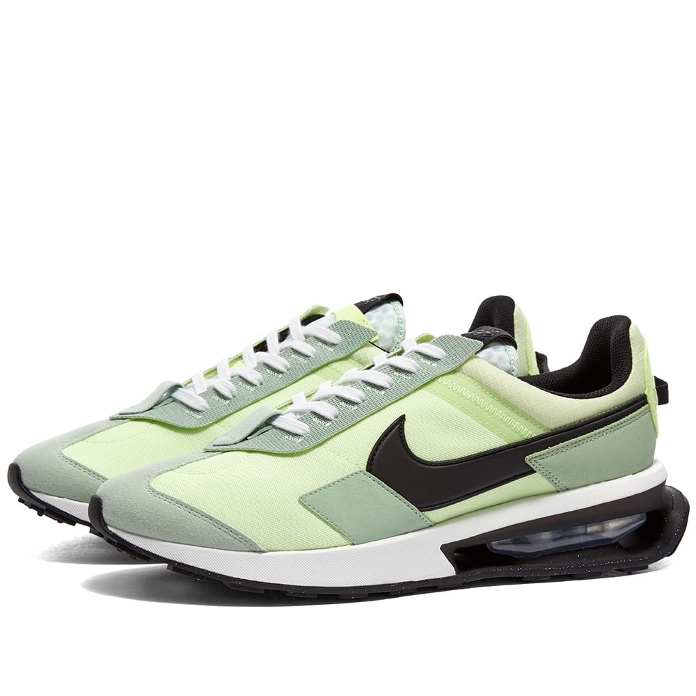 Nike combines the aesthetics of the past with the tech of the future to create the Air Max Pre-Day. The pistachio green uppers of this pair, with their large Swoosh branding and angular overlays, are reminiscent of styles from the Beaverton brand’s earliest days, while the sole unit is loaded with modern tech. An exposed Air unit sits — floats, almost — towards the heel, contrasting ground-breaking visuals with the classic waffle-inspired outsole. Heritage script on both the tongue and heel completes the look. - Textile Uppers - Suede Overlays - Heel Pull - Air Cushioning - Rubber Outsole - Style Code: DD0338-300