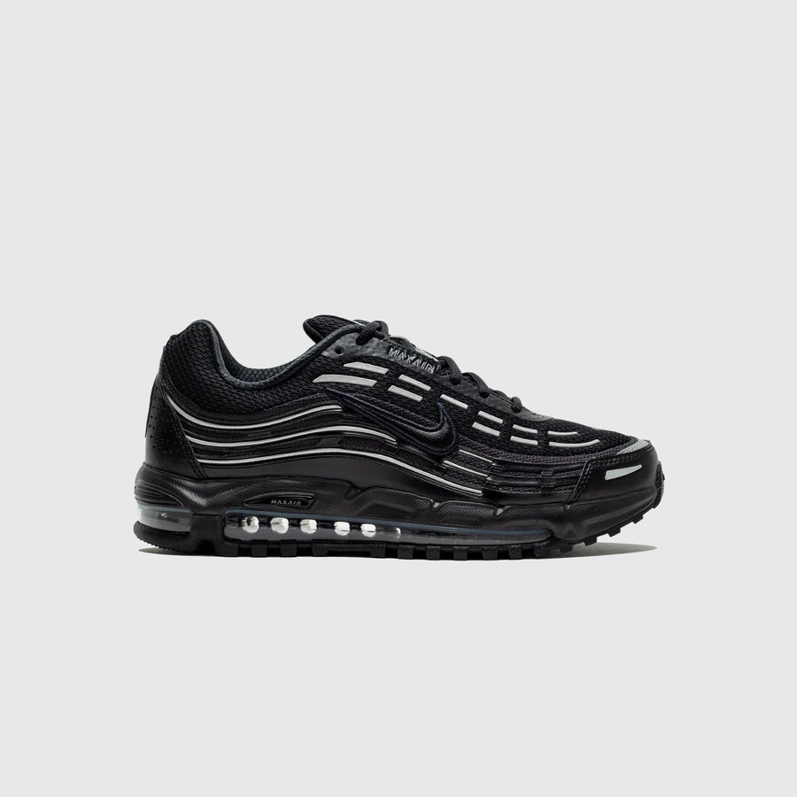 - FZ4110 002 - Black/Black-Black-Metallic Silver - Black mesh upper - Black leather overlays - Black padded mesh tongue - Black leather swoosh at the lateral and medial side wall - Metallic silver accents throughout - Metallic silver "NIKE AIR" branding at the heel - Black Max Air Unit at foam rubber midsole - Black rubber outsole