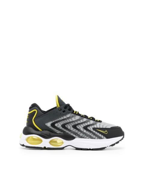 Air Max TW sneakers Part of the Air Max TW family, these Nike sneakers feature an urban and sporty design - here, in white, blue and yellow colours. They feature a lightweight upper with angular and organic lines - that create a haptic effect - while the famous rubber sole with visible Air cushioning completes the look with comfort. Highlights - White/navy blue/lemon yellow - Signature swoosh logo detail - Embroidered logo to the rear - Round toe - Front lace-up fastening - Branded insole - Rubber sole with max air cushioning - These styles are supplied by a premium sneaker marketplace. stocking only the most sought-after footwear, they source and curate some of the most hard to find sneakers from around the world. Imported Composition Sole: Rubber 100% Lining: Fabric 100% Outer: Other Materials 100% SIZE & FIT Measurement HEEL 2.36 in(6 cm) Sole height 0.98 in(2.5 cm) HEIGHT 2.75 in(7 cm)