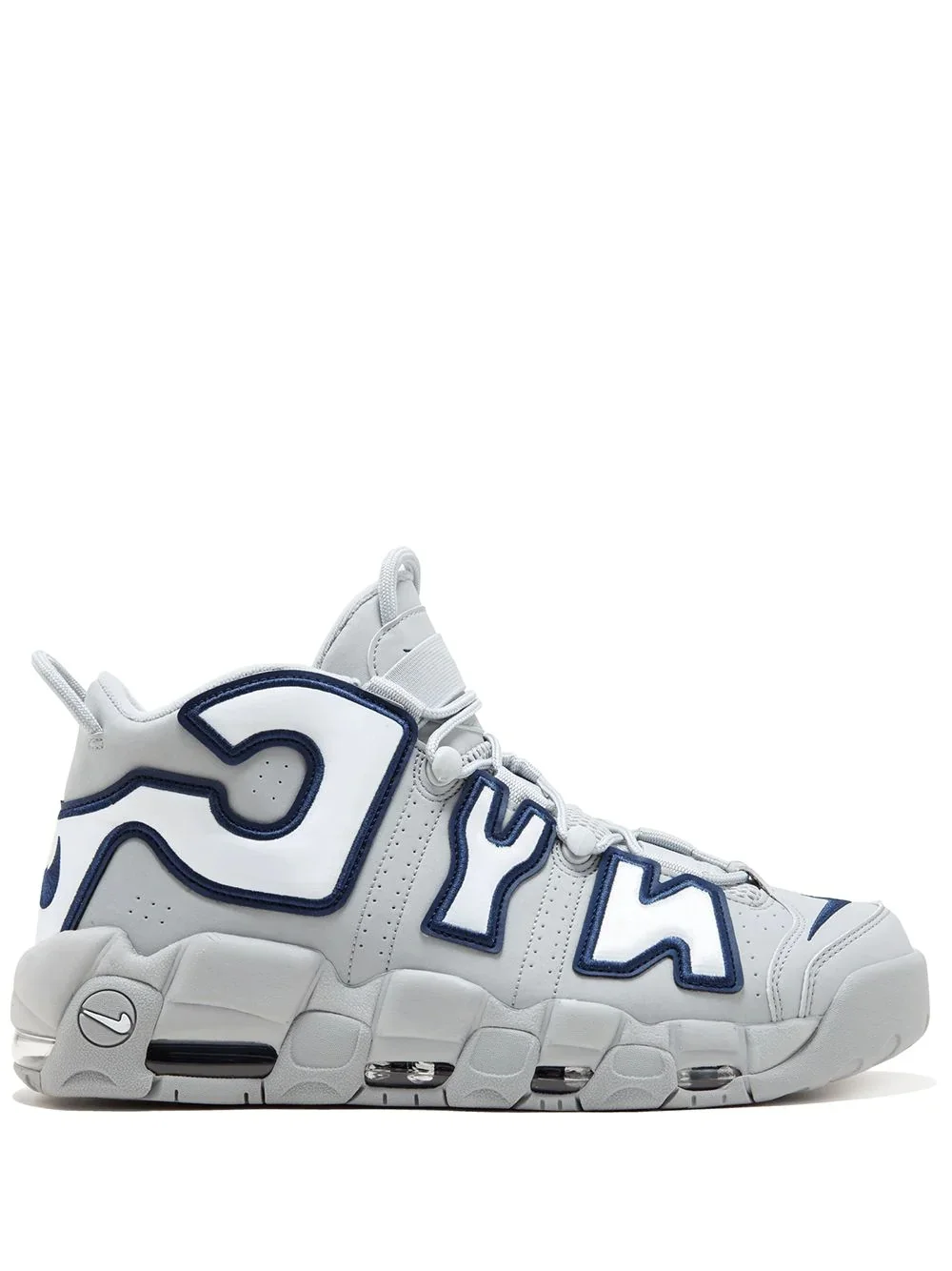 Air More Uptempo QS "New York City" sneakers Founded in 1964 by Bill Bowerman and Phil Knight, sportswear conglomerate Nike is a pioneering sportswear label with technical innovation and contemporary design at its core. These wolf grey, midnight navy and white Air More Uptempo NYC sneakers are crafted from leather and feature a round toe, a flat rubber sole, a lace-up front fastening, a perforated style, side logo branding and a pull tab to the tongue and rear. These styles are supplied by a premium sneaker and street wear marketplace. Stocking only the most sought-after footwear and clothing, they source and curate some of the most hard-to-find items from around the world. Imported Composition Outer: Leather 100% Lining: Polyester 100% Sole: Rubber 100%