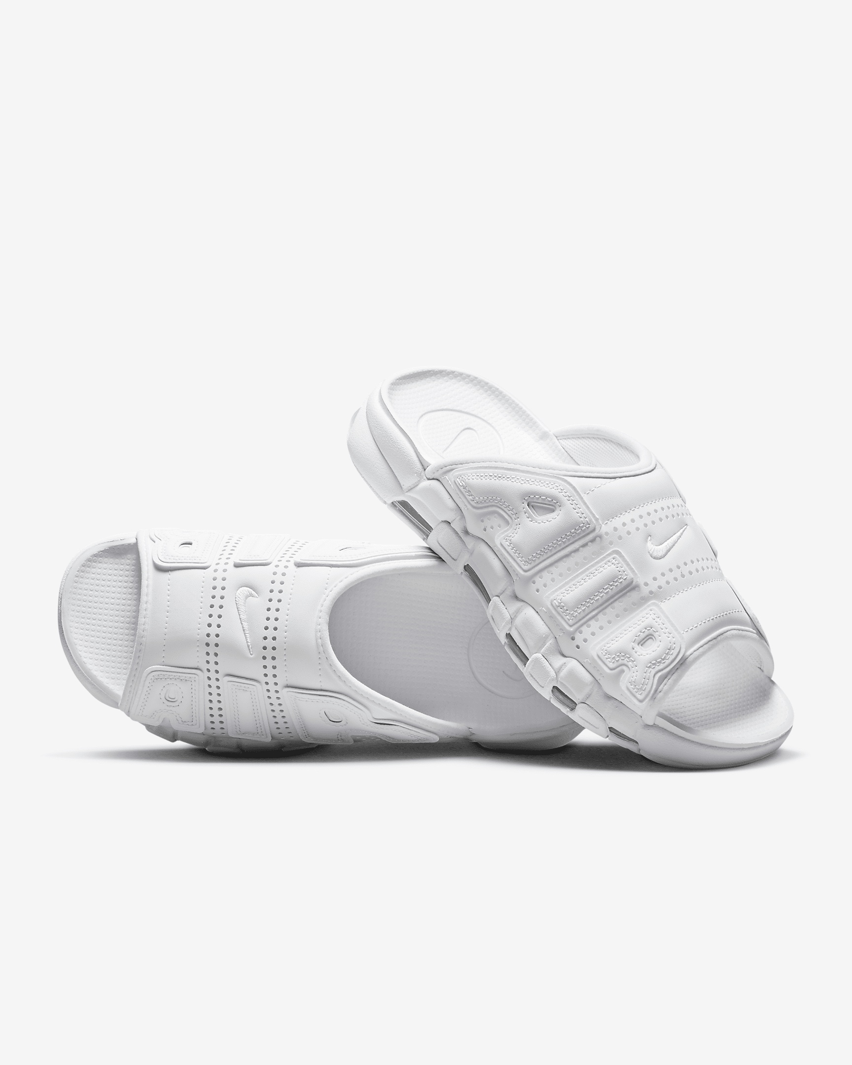 Keeping the exaggerated, graffiti-styled "AIR" graphics and full-length Nike Air cushioning you love from the original, your favorite hoops look gets transformed into slides you can easily slip on and off. Pairing '90s style with summertime comfort, its plush strap, airy perforations and soft foam make it a perfect choice—courtside, beachside and anywhere in between. Benefits - Plush, padded strap with perforations feels great and makes for easy on and off. - Foam footbed is contoured to help keep your foot in place. - Originally designed for performance sports, the visible Nike Air cushioning offers time-tested comfort. - Rubber outsole features the grip pattern from the original Uptempo, delivering traction and durability. - Shown: White/Team White/White - Style: FD9884-101