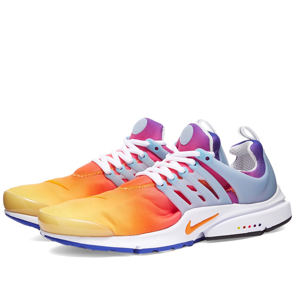 Nike’s Air Presto was marketed as a “t-shirt for your feet” on its 2000 debut, featuring a sock-like upper that kept you comfy from morning ‘til night. That’s still the case today, and this pair even looks the part, too. This time around, the textile upper has a sunrise-to-sunset gradient, blending vibrant yellow, pink and purple hues from toe to heel. It retains the model’s signature midfoot cage for extra support and, of course, a Zoom Air-cushioned sole unit underfoot. - Textile Uppers - Sock-Like Construction - Heel Pull - Midfoot Cage - Zoom Air Cushioning - Rubber Outsole - Style Code: CJ1229-700