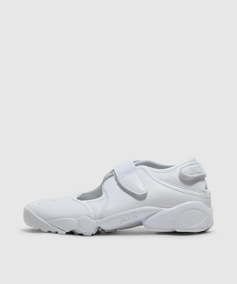 The Women’s Air Rift Sneaker is the latest offering from sporty spearheads Nike. Designed with comfort and durability in mind, this stand-out silhouette offers a playful aesthetic, for an everyday style no matter the terrain. • Velcro strap fastening • Logo branding on front, side & rear • Signature Swoosh design • Leather uppers • Split toe design • Nike air unit in heel • Rubber toecap & outsole • Item code: HM5737-100 Product Information • 4119169