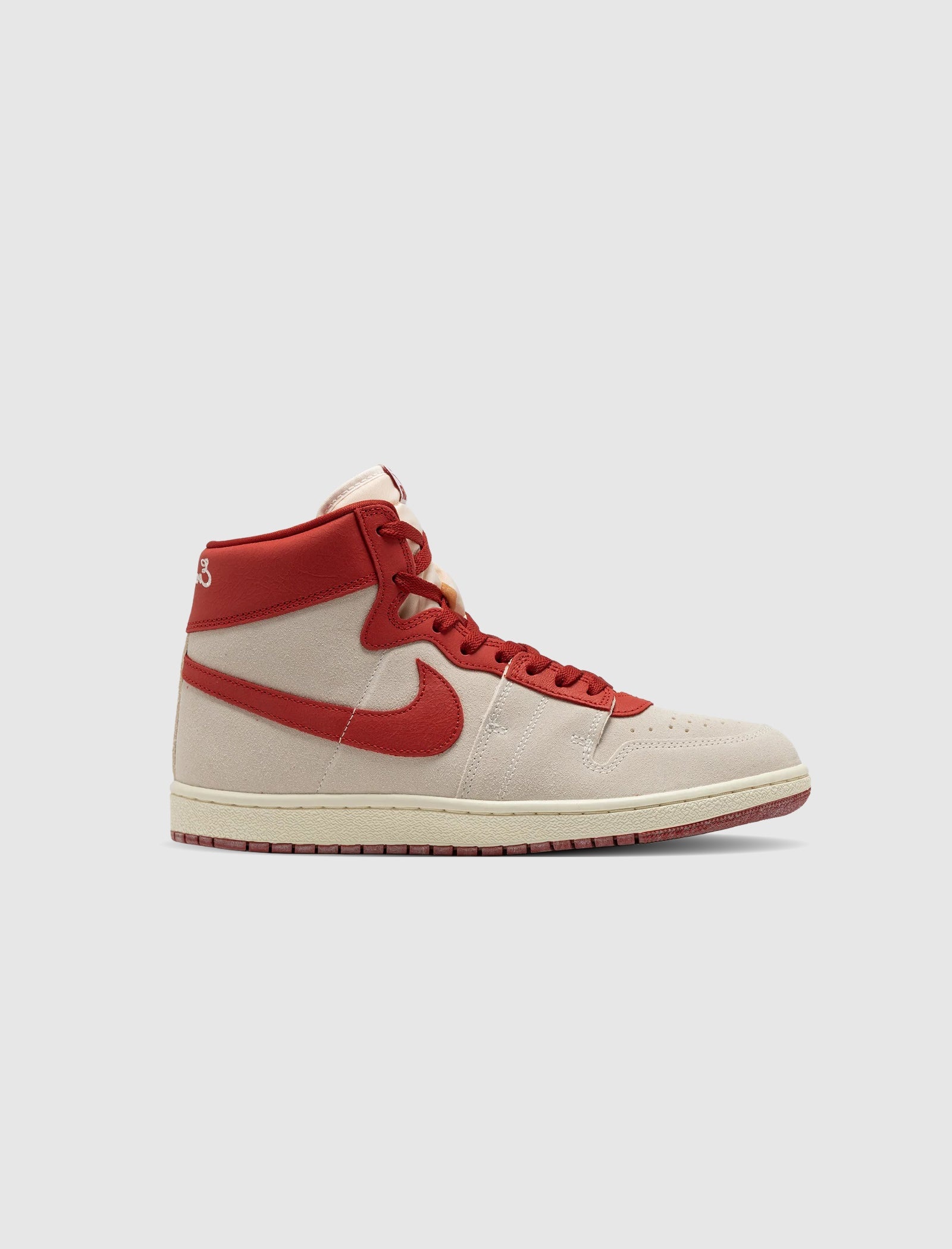 High top sneakers. Leather overlays around the toe. Perforated leather toe box. Leather side panels, heel counter. Suede padded collar, and eyelet panels. Suede logo-shaped patches stitched on the side panels. Embroidered logo on the back of the collar. Nylon tongue. Front lacing. Rubber midsole. Rubber outsole. - Smooth leather, and suede upper SKU: DZ3497-106
