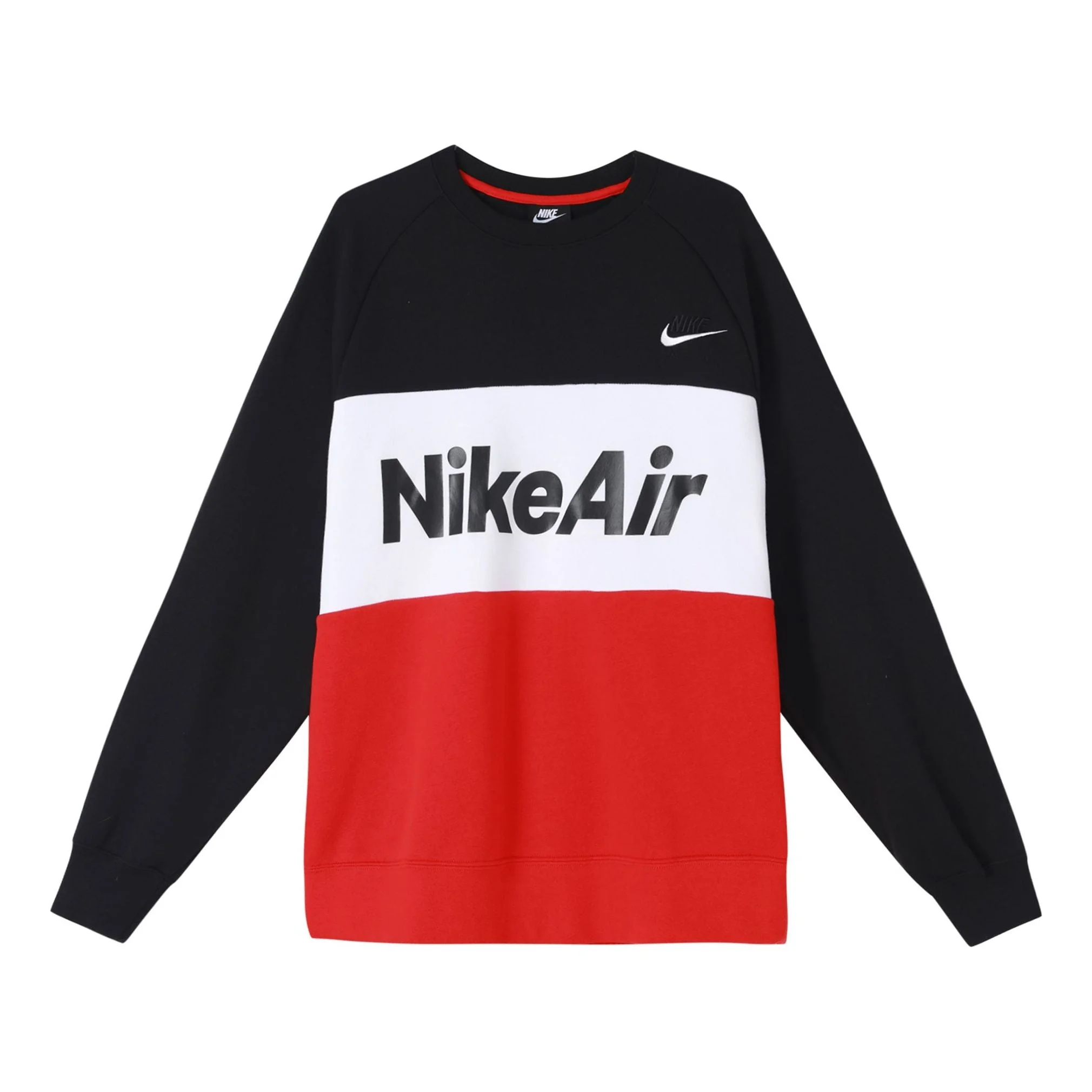 Nike Air Splicing Colorblock Large Logo Fleece Round Neck Black CJ4828-011