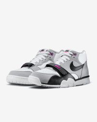 The original cross trainer from '87 now lets you cross between uptown and downtown without a glitch. Details like a forefoot strap and layered midsole add retro appeal, while leather breaks in beautifully. And if that's not enough, Air cushioning helps keep you comfortable on long outings. So, where will you take your Trainers? Benefits - Originally designed for performance sports, Air cushioning delivers lasting comfort. - Rubber outsole adds traction and durability. - Forefoot strap lets you personalize your fit while mid-height collar adds support. - Perforations on toe and sides help keep it airy and breathable. Product Details - Perforations on toe - Shown: Medium Grey/White/Hyper Violet/Black - Style: FN6885-062