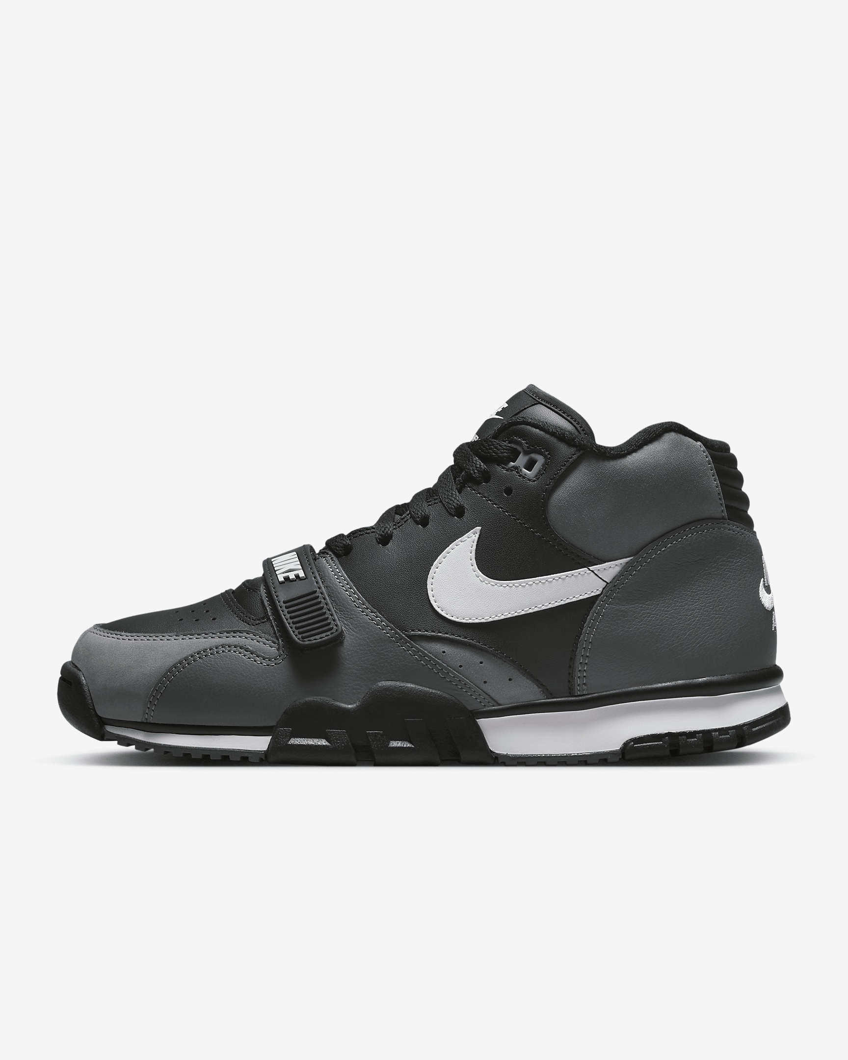 Where will you take your Trainers? Anywhere and everywhere? These essential shoes, just like the originals from '87, let you cross between uptown and downtown without a glitch. With retro details you love like the forefoot strap and layered midsole, as well as crisp leather in classic grayscale, it keeps the legend alive and well. So, again, where will you take your Trainers? Anywhere and everywhere, indeed. Benefits - Originally designed for performance sports, Nike Air cushioning delivers lasting comfort. - Leather upper keeps it durable and adds a classic finish. - Forefoot strap lets you personalize your fit. - Mid-cut collar gives you a supportive feel. - Rubber outsole adds traction and durability. Product Details - Perforations on toe - Foam midsole - Shown: Black/Dark Grey/Cool Grey/White - Style: FD0808-001
