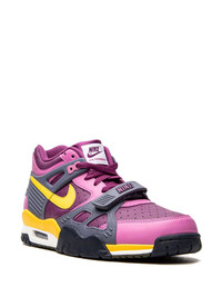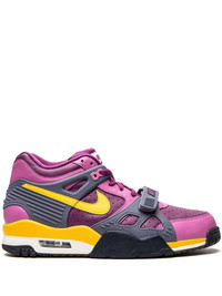 Air Trainer 3 "Viotech" sneakers The Nike Air Trainer 3 “Viotech” is a 2020 retro release that pays homage to the original colourway debuted in 2002. Dubbed “Viotech”, the regal purple hue appears in dark and light shades across the perforated leather toe, mid-panel, and heel while contrasting yellow Swoosh branding compliments the mid-panel. The adjustable midfoot touch strap is a hallmark of the Air Trainer series and allows the wearer to customize the fit on the fly. Underneath, the visible Air unit in the heel of the midsole provides a cushioned ride. Highlights - Purple - Leather - Signature swoosh logo detail - Contrasting panel detail - Round toe - Front lace-up fastening - Front touch-strap fastening - Logo patch at the tongue - Branded insole - Signature air cushioning - Rubber sole - These styles are supplied by a premium sneaker marketplace. stocking only the most sought-after footwear, they source and curate some of the most hard to find sneakers from around the world. Imported Composition Leather 100%