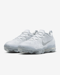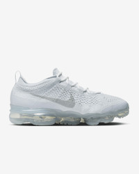 Have you ever walked on Air? Step into the Air VaporMax 2023 to see how it's done. The innovative tech is revealed through the perforated sockliner (pull it out to see more). The stretchy Flyknit upper is made with at least 20% recycled content by weight. More Benefits - The first 1-piece Air unit to run the entire length of a shoe, it allows for smoother transitions and adds unbelievable cushioning. - Seamless collar sculpts the ankle and helps reduces hot spots. Product Details - Rubber outsole - Traditional lacing - Not intended for use as Personal Protective Equipment (PPE) - Shown: Pure Platinum/Pure Platinum/Pure Platinum/White - Style: DV1678-002