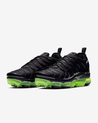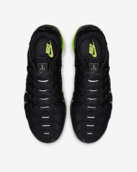 The Nike Air VaporMax Plus looks to the past and propels you into the future. Nodding to the 1998 Air Max Plus with its floating cage, padded upper and heel logo, it adds revolutionary VaporMax Air technology to ramp up the comfort and create a modern look. Benefits - Bringing beach life to the city, the prominent arch draws inspiration from a whale's tail and adds structure while the iconic wavy fingers nod to palm trees and ocean waves. - Originally designed for performance running, Nike Air units provide lightweight cushioning that lasts. - Bold, gradient colors add heritage style to this powerhouse Air Max. - Synthetic upper adds lightweight comfort and durability. - Full-length rubber outsole adds traction and durability to your journey. Product Details - Pull tab - Reflective details - Not intended for use as Personal Protective Equipment (PPE) - Shown: Black/Volt/Reflect Silver - Style: 924453-015