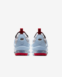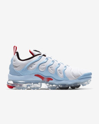 The Nike Air VaporMax Plus gets updated with colors inspired by the Windy City. Nodding to the futuristic '98 Air Max Plus with its floating cage, cushioned upper and heel logo, it adds revolutionary VaporMax Air technology to ramp up your comfort, modern look and defiant style. Benefits - VaporMax Air technology provides ultra lightweight cushioning. - Floating cage around the foot mimics the OG '98 design. - Cushioned fabric and synthetic material provide durability. - Rubber pods in high-wear areas add durability. - Blue represent Lake Michigan and the Chicago River, white celebrates the west, south and north side of the city and red is for important moments that have helped define the Windy City. - Shown: White/Black/Psychic Blue/University Red - Style: CW6974-100