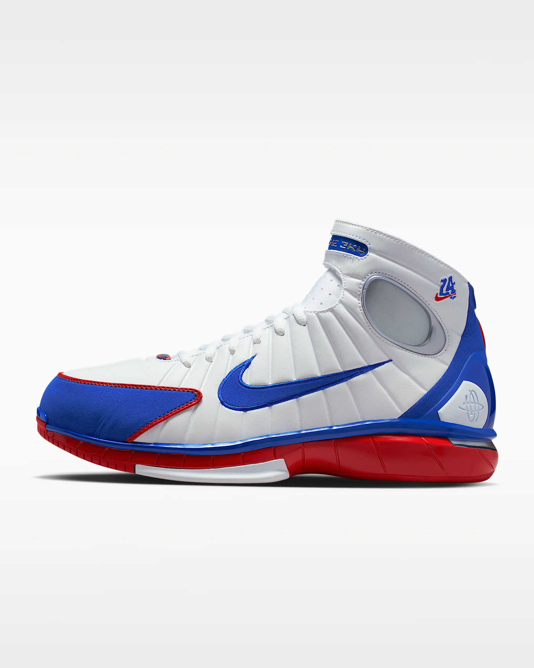The Zoom Huarache 2K4 is cemented in Nike Basketball Heritage. Its design nods to the 1992 Air Flight Huarache. Air Zoom cushioning helps provide a quick-off-the-ground sensation. Product Details - Synthetic leather upper - Foam midsole - Rubber outsole - Shown: White/Varsity Red/Metallic Silver/Varsity Royal - Style: IR0563-146