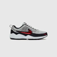 - HF9117 001 - Metallic Silver/Sport Red-Black-White - The Nike Air Zoom Spiridon SP's OG colorway returns for the first time since 2016. - Metallic grey breathable mesh upper - Black textile overlay - Sport red swoosh on the lateral and medial sidewall - Metallic grey breathable mesh tongue with 3M accents - Sport red swoosh at the toe - Black canvas pull tab with 3M accents - White Zoom Air foam midsole - Black rubber outsole