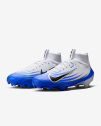 With Air Zoom cushioning so responsive you’ll burst off the line of scrimmage, the Nike Vapor Pro 1 is designed to help you take your speed to the next level. Benefits - Mesh combines with inner sleeve to provide a breathable, snug fit. - Forefoot Air Zoom unit stitched to the upper offers unreal responsiveness when making sudden, swift moves. - Vapor plate is lightweight, yet structurally strong. - Wide stud placement ensures optimal multidirectional traction. - Molded plastic around the heel offers stability for your ankle and Achilles. Product Details - Shown: White/Racer Blue/Black - Style: FB3298-101