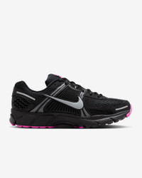 Carve a new lane for yourself in the Zoom Vomero 5—your go-to for complexity, depth and now, easy styling. The richly layered design includes textiles, synthetic suede and plastic accents that come together to make one of the coolest sneakers of the season. A neutral palette makes them a certain win for any 'fit your wardrobe throws at you. Taking early 2000s running to modern heights, it's a true tech meets low-key love story. Benefits - Synthetic leather on the upper adds durability while mesh adds breathability. - Foam midsole with Zoom Air cushioning offers a responsive, smooth ride. - Plastic caging on the side adds support. - Ventilation ports on the heel keep it airy and comfortable. - Rubber outsole gives you durable traction. Product Details - Reflective details - Not intended for use as Personal Protective Equipment (PPE) - Shown: Black/Anthracite/Pink Blast/Metallic Platinum - Style: FB9149-004