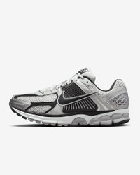 Carve out a new lane for yourself in the Zoom Vomero 5. A richly layered design pairs airy textiles with synthetic leather and plastic accents to create a complex upper that's easy to style. And check out the insole, which celebrates iconic running coach and Nike co-founder Bill Bowerman. Benefits - Synthetic leather on the upper adds durability and structure. - Mesh panels and ventilation ports on the heel keep the shoes light and breathable. - Snappy and responsive, Zoom Air cushioning helps provide a quick-off-the-ground sensation. - Plastic caging on the side offers a supportive feel. - Rubber outsole gives you durable traction. Product Details - Reflective details - Not intended for use as Personal Protective Equipment (PPE) - Shown: Metallic Silver/Pure Platinum/White/Black - Style: FJ4151-004