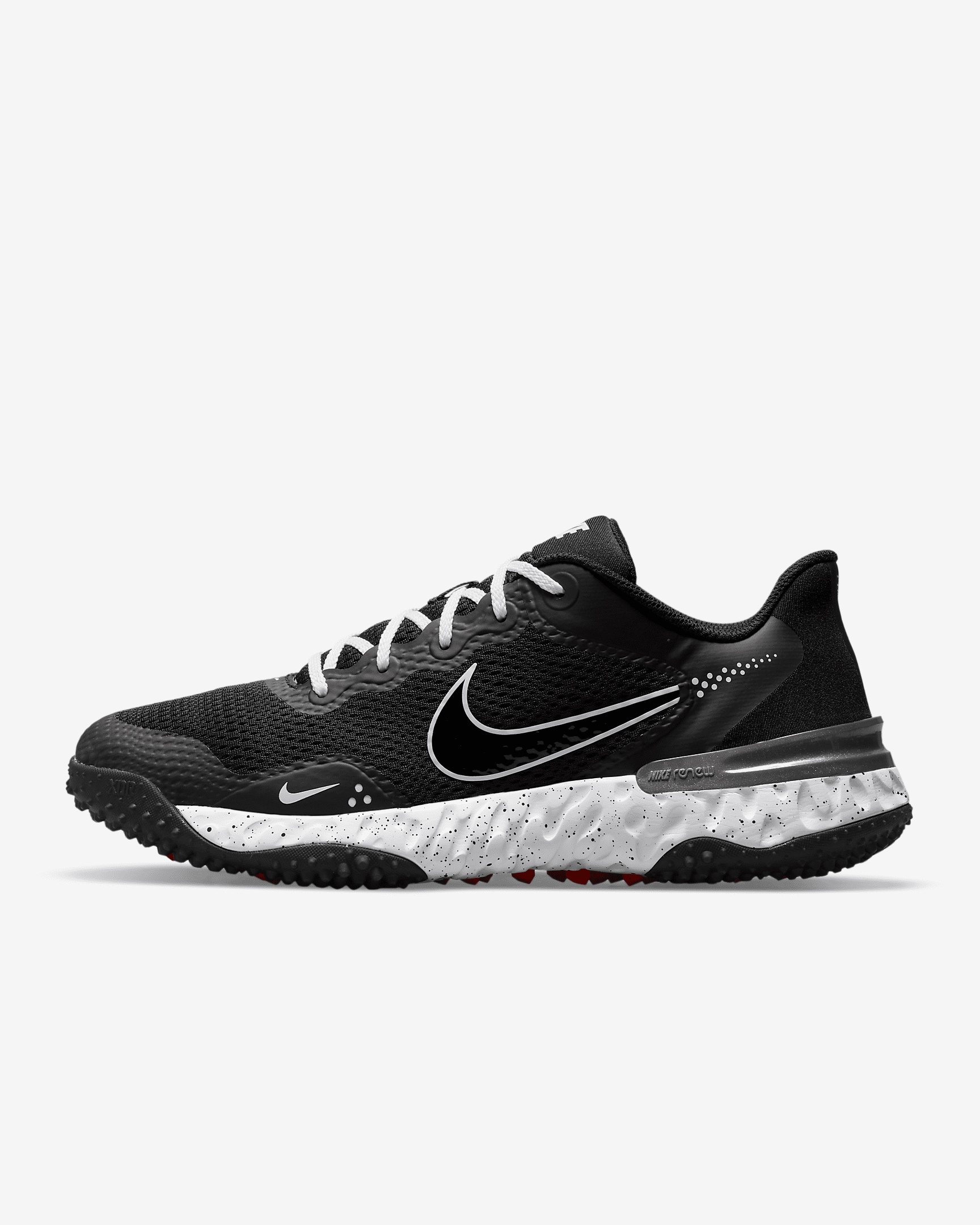 Dominate any position on the field in the Nike Alpha Huarache Elite 3 Turf, with its sneaker-like feel and versatile performance. An aggressive traction pattern features active rubber pegs that move with each step to grip the ground better. Benefits - Layers of breathable mesh and strategically placed overlays give you a secure fit. - Nike Renew foam cushioning provides soft underfoot comfort. - Durable rubber sole has an aggressive traction pattern and rubber pegs that grip. - Soft collar feels comfortable around your ankle. - Shown: Black/White/Metallic Dark Grey/Black - Style: CK0748-010 SIZE & FIT Fits small; we recommend ordering a half size up