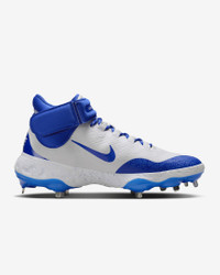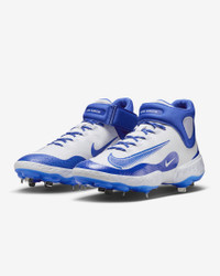 Let the baseball world know what kind of bat-wielding beast you are. The midsole has Nike React technology, perfect for sprinting around the bags or robbing your opponent of extra bases. The plush, breathable upper sports a strap that helps secure your foot without adding any unnecessary weight. Plus, the grippy rubber traction is tailor-made for all-out effort plays. More Benefits - Internal webbing and updated mesh provide lightweight, breathable support and containment. - Layers of breathable mesh and strategically placed overlays give you a secure fit. Product Details - Shown: White/Hyper Royal - Style: FD2744-104