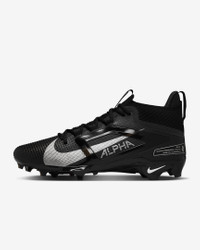 When the clock’s ticking away and only a touchdown or defensive stand will do, the Alpha Menace 4 Elite can help you perform at the highest level. We kept everything you loved about the 3, like the strong plastic side cage for stability. But we also made updates based on input from pro superstars, like a revamped upper and more accessible lacing system. The result is a cleat that has you ready to change the game. More Benefits - Synthetic leather on the upper provides durability. - Stretch-knit cuff wraps your ankle. - Soft foam midsole provides lightweight cushioning and a close-to-the-ground feel. Product Details - Shown: Black/Metallic Silver - Style: FD7036-002