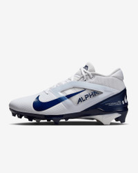 Whether you’re toting the rock or speeding by your defender, the Alpha Menace Pro 4 is primed for playmaking and pad pops. Better durability and breathability throughout the upper compared to the previous iteration complement a cleat capable of suddenness, stuffs and stands when it counts most. Product Details - Shown: White/Midnight Navy/Photon Dust/Midnight Navy - Style: FD7037-104