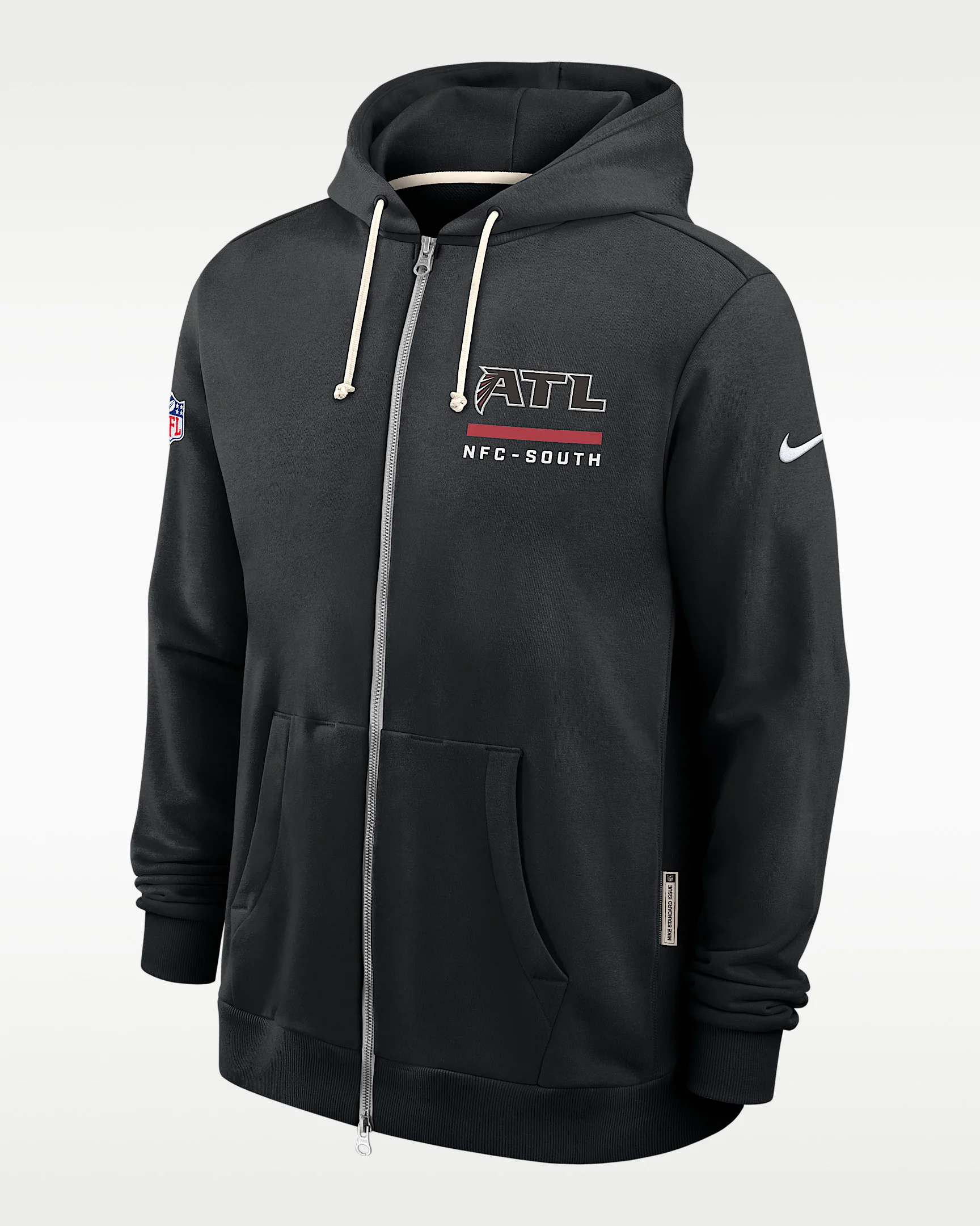 This Atlanta Falcons Utility Player Sideline Hoodie combines sweat-wicking technology with a soft fleece lining to help create a warm, comfortable feel in cold temps. Benefits - Nike Dri-FIT technology moves sweat away from your skin for quicker evaporation, helping you stay dry and comfortable. - Dolman sleeves help increase range of motion with a roomy fit under the arms. Product Details - Hood with drawstring - Front pocket - Zippered pocket at right side - 53% polyester/47% cotton - Machine wash - Imported - Shown: Black - Style: 03AV00A96-2FB