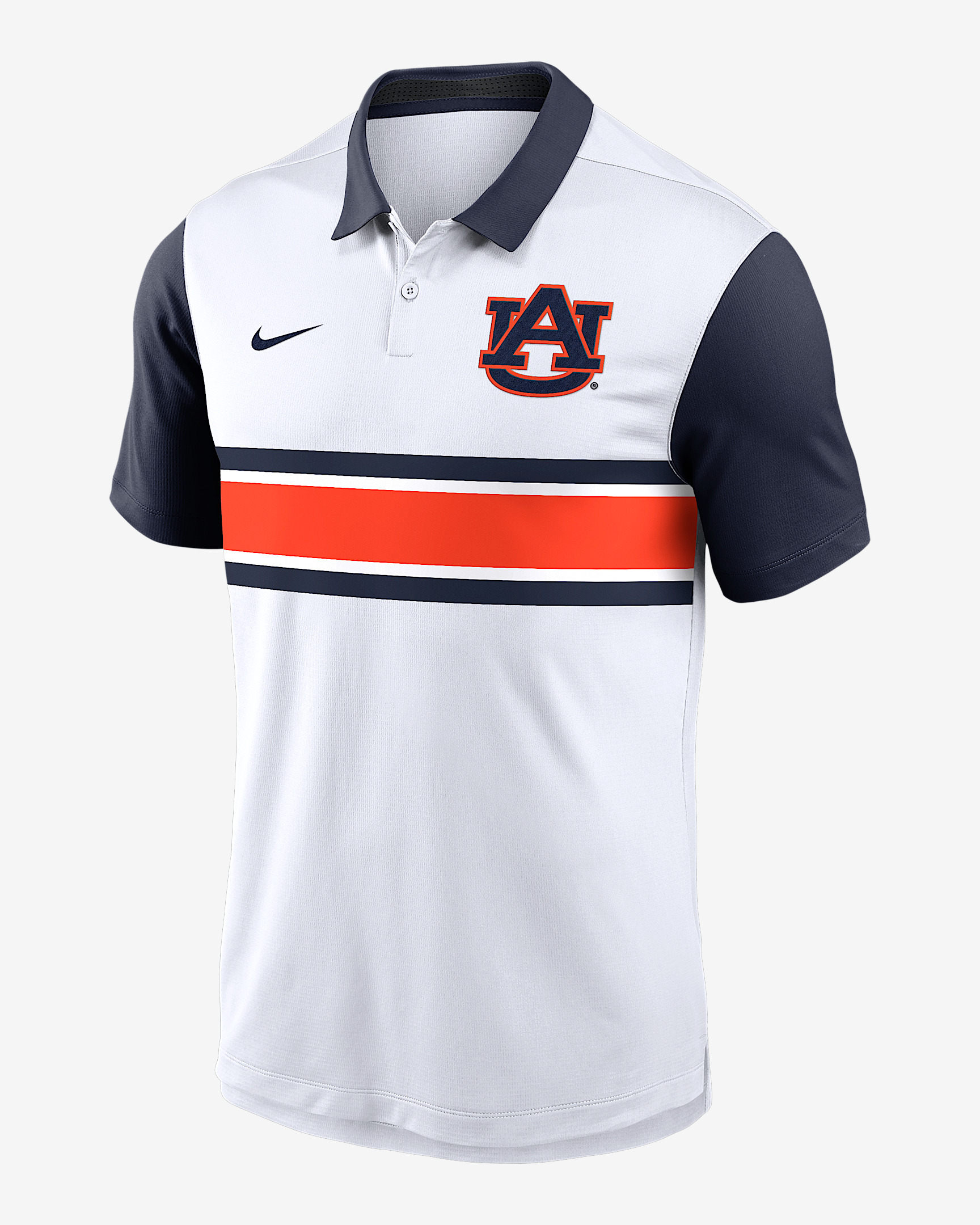 This Primetime Vapor Pattern Polo has sweat-wicking technology and UV protection to help keep you dry and comfortable. Designed with a striped pattern matching the Auburn logo, its soft and stretchy material helps provide added comfort. Benefits - Nike Dri-FIT technology moves sweat away from your skin for quicker evaporation, helping you stay dry and comfortable. - This product provides UVA and UVB protection from the sun only in the areas covered by the garment. To protect exposed areas, the use of good quality sunscreen is recommended. Product Details - 2-button placket - Drop-tail hem - 88% recycled polyester/12% spandex - Machine wash - Imported - Shown: White - Style: 00HT19NUAUN-B3F