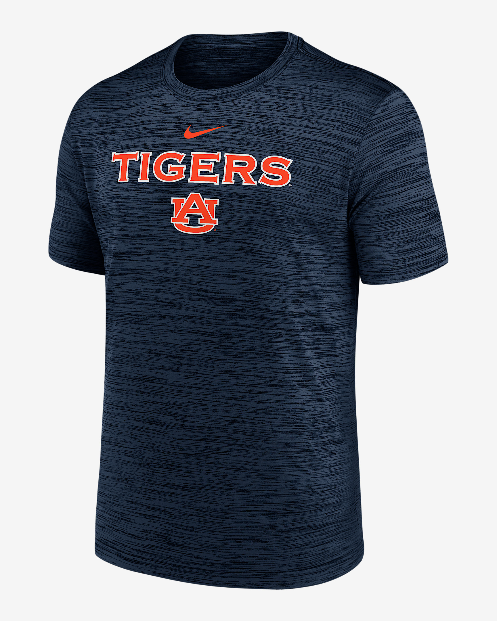 Designed with a cross-dyed pattern that accentuates the Auburn graphics, this Sideline Velocity T-Shirt has sweat-wicking technology to help keep you dry as you support your favorite collegiate squad. Benefits - Nike Dri-FIT technology moves sweat away from your skin for quicker evaporation, helping you stay dry and comfortable. - Jersey fabric has a soft, lightweight feel. Product Details - 100% polyester - Machine wash - Imported - Shown: Navy - Style: 02ER41SAUN-7QM