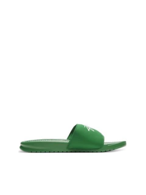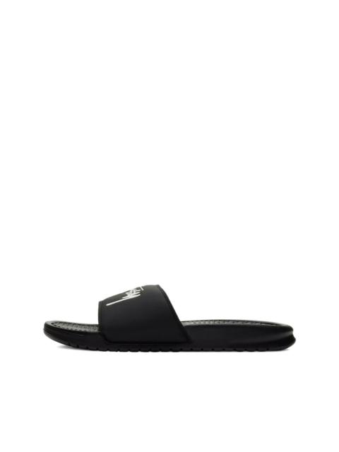 Benassi slides Highlights - Black - Rubber sole - Textured footbed - Single band upper - Logo detail Imported Composition Sole: Rubber 100% Outer: Polyurethane 100% Lining: Polyurethane 100%