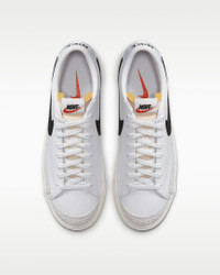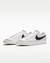 Praised by the streets for its classic simplicity and comfort, the Nike Blazer Low '77 Vintage returns with its low-profile style and heritage b-ball looks. Featuring luscious suede details, a retro Swoosh design and a super-soft collar, it's the must-have wardrobe staple that will take you everywhere. Benefits - Originally designed for performance hoops, the Nike Blazer Low offers durability and comfort that lasts. The nearly 1-to-1 remake features crisp leather on the upper with soft suede and synthetic details for added durability and throwback styling. - The ultra-clean colors, simple lines and low-cut, padded collar creates a sleek look that feels great. - The vulcanised construction fuses the outsole to midsole for a streamlined look that's durable and comfortable. - The solid rubber outsole with herringbone pattern adds traction, durability and heritage styling. Product Details - Shown: White/Sail/Black - Style: DA6364-101