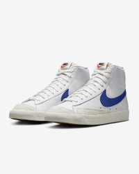 In the ‘70s, Nike was the new shoe on the block. So new in fact, we were still breaking into the basketball scene and testing prototypes on the feet of our local team. Of course, the design improved over the years, but the name stuck. The Nike Blazer Mid ’77 Vintage—classic since the beginning. Benefits - Leather and synthetic upper keeps the classic look of the original while adding comfort and support. - Vintage treatment on the midsole provides an old-school look. - Autoclave construction fuses the outsole to the midsole for a streamlined look that echoes the ‘70s design. - Exposed foam on the tongue provides a throwback look. - Non-marking, solid-rubber outsole has had the same herringbone pattern from the start, because why change what works. It’s excellent traction and durability that leaves the imprint you love. Product Details - Shown: White/Summit White/Sail/Deep Royal Blue - Style: BQ6806-132 SIZE & FIT For easier entry, we recommend unlacing the top 4 eyelets and sghtly loosening the laces farther down