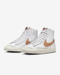 In the ‘70s, Nike was the new shoe on the block. So new in fact, we were still breaking into the basketball scene and testing prototypes on the feet of our local team. Of course, the design improved over the years, but the name stuck. The Nike Blazer Mid ’77 Vintage—classic since the beginning. Benefits - Leather and synthetic upper keeps the classic look of the original while adding comfort and support. - Vintage treatment on the midsole provides an old-school look. - Autoclave construction fuses the outsole to the midsole for a streamlined look that echoes the ‘70s design. - Exposed foam on the tongue provides a throwback look. - Non-marking, solid-rubber outsole has had the same herringbone pattern from the start, because why change what works. It’s excellent traction and durability that leaves the imprint you love. - Shown: White/White/Black/Amber Brown - Style: BQ6806-125 SIZE & FIT For easier entry, we recommend unlacing the top 4 eyelets and sghtly loosening the laces farther down