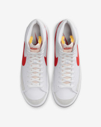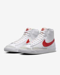 In the ‘70s, Nike was the new shoe on the block. So new in fact, we were still breaking into the basketball scene and testing prototypes on the feet of our local team. Of course, the design improved over the years, but the name stuck. The Nike Blazer Mid ’77 Vintage—classic since the beginning. Benefits - Leather and synthetic upper keeps the classic look of the original while adding comfort and support. - Vintage treatment on the midsole provides an old-school look. - Autoclave construction fuses the outsole to the midsole for a streamlined look that echoes the ‘70s design. - Exposed foam on the tongue provides a throwback look. - Non-marking, solid-rubber outsole has had the same herringbone pattern from the start, because why change what works. It’s excellent traction and durability that leaves the imprint you love. Product Details - Shown: White/Summit White/Picante Red - Style: BQ6806-128 SIZE & FIT For easier entry, we recommend unlacing the top 4 eyelets and sghtly loosening the laces farther down